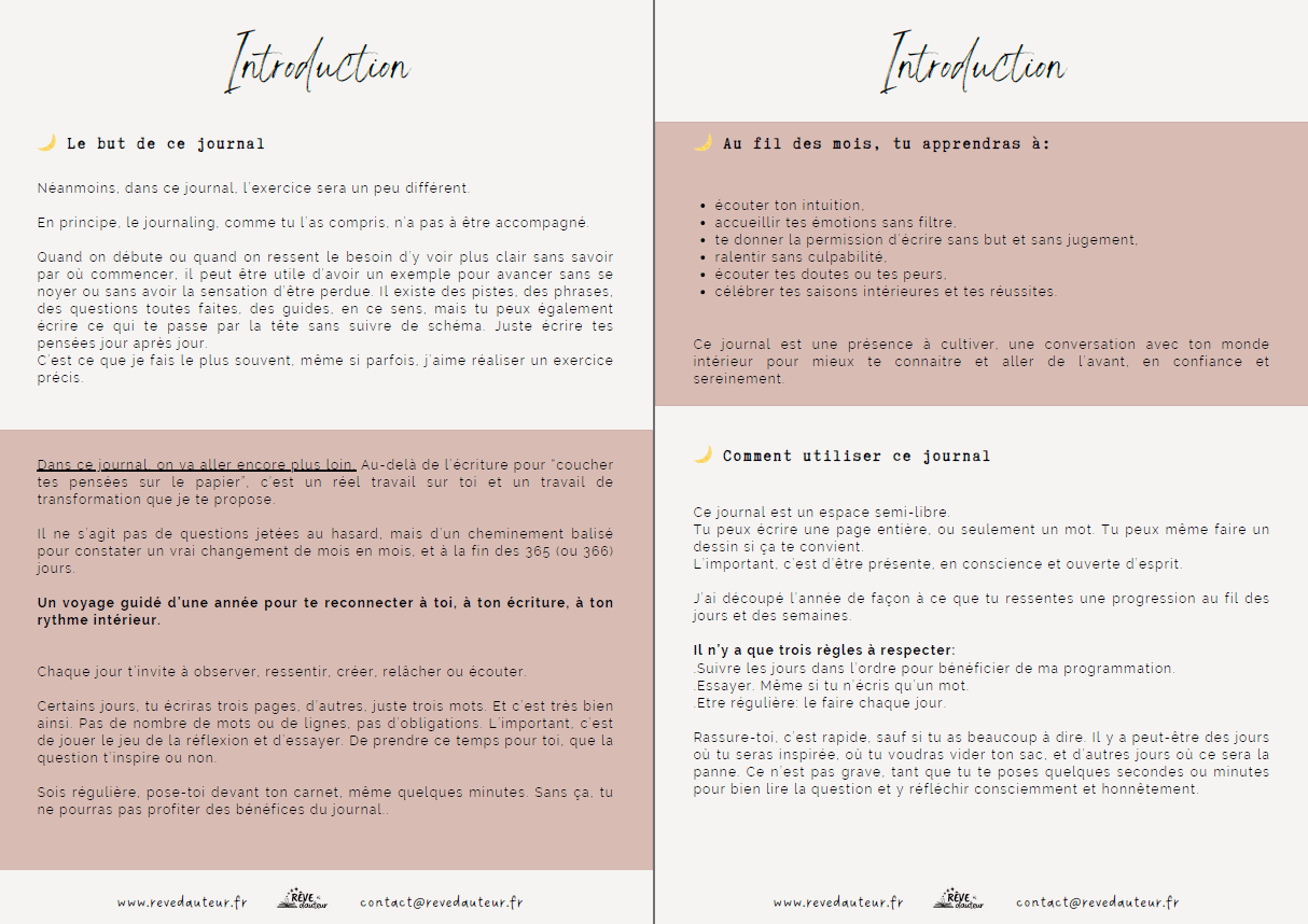 Après l'achat, un mail te sera envoyé avec le journal à télécharger en format PDF. Je te conseille de bien lire l'intro et ensuite, laisse-toi guider.