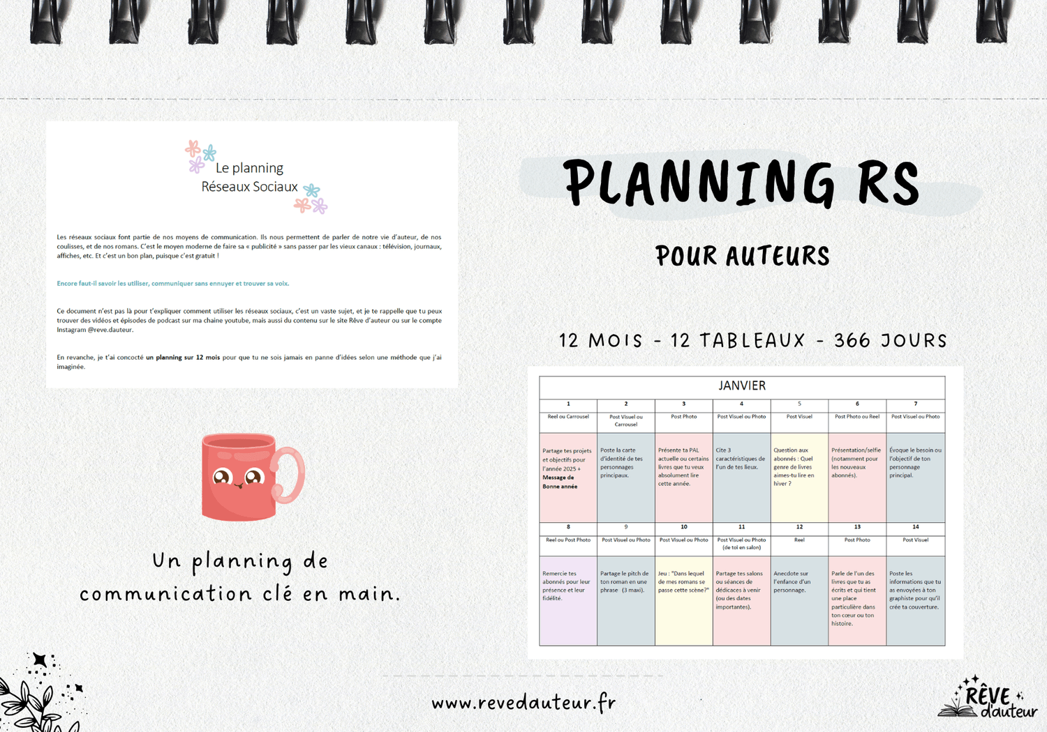 Plus besoin de te stresser Ă chercher des idĂ©es de publications. Le planning est prĂȘt pour 366 jours de contenu unique et ciblĂ©.